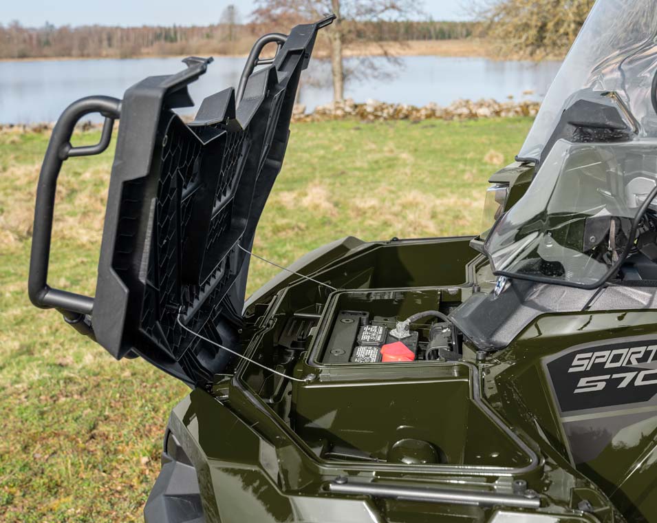 Prise 12 volts, port de charge lente intégré, système de sécurité activé par code PIN, Rallonge de porte-bagages avant, support de treuil inclus, protections CV